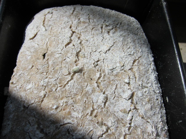 Wer also irgendwo in der hinteren Ecke der Brotkapsel einen Kanten altes Roggenbrot übrig hat, kann das sehr gut in dem Teig unterbringen. Dazu 50g Altbrot mahlen und mit der doppelten Menge warmen Wassers verrühren. Eine Stunde quellen lassen, und mit den anderen Zutaten in den Teig mischen. In diesem Fall etwas weniger Wasser in den Teig geben, damit er nicht zu weich wird.