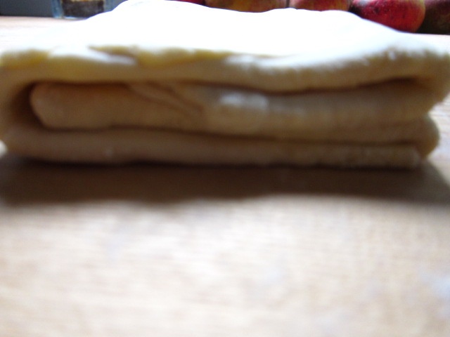 Die Apfeltaschen sind wohl aufwändig in der Herstellung, sollten aber gelingen, wenn man sich zwei Dinge zu Herzen nimmt. Der Teig sollte stets kühl geführt werden. Und er braucht seine Siesta, damit er sich entspannen kann und nicht zäh zusammen schnurrt.