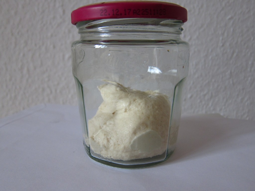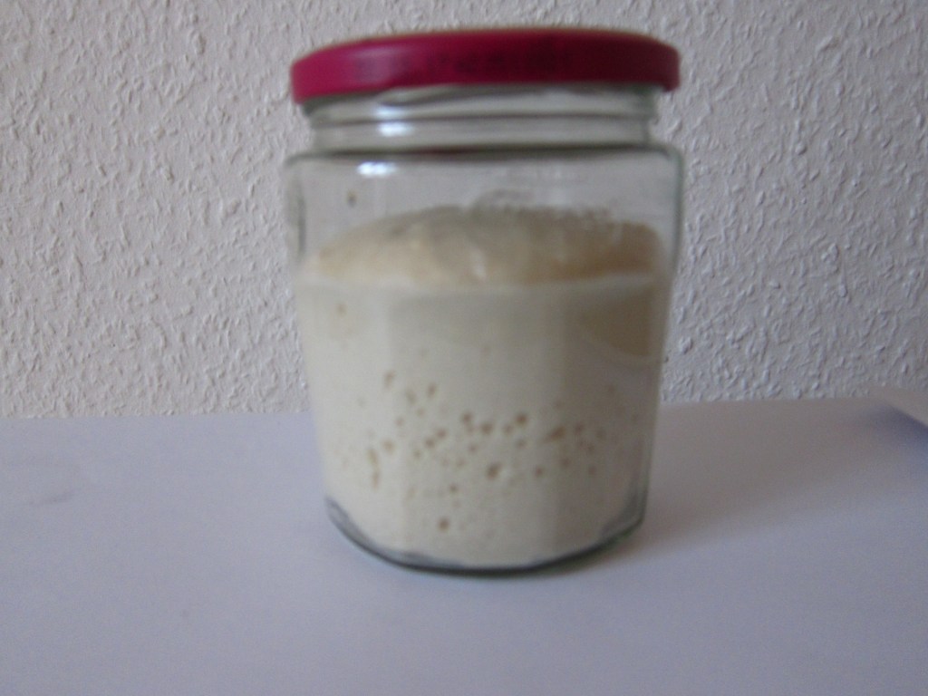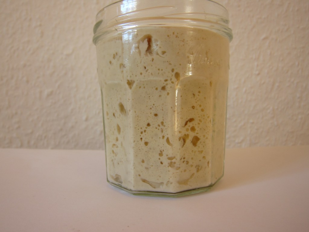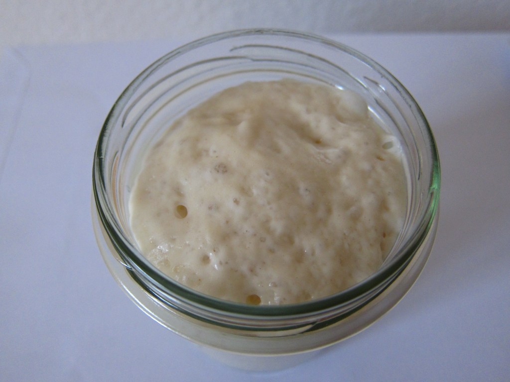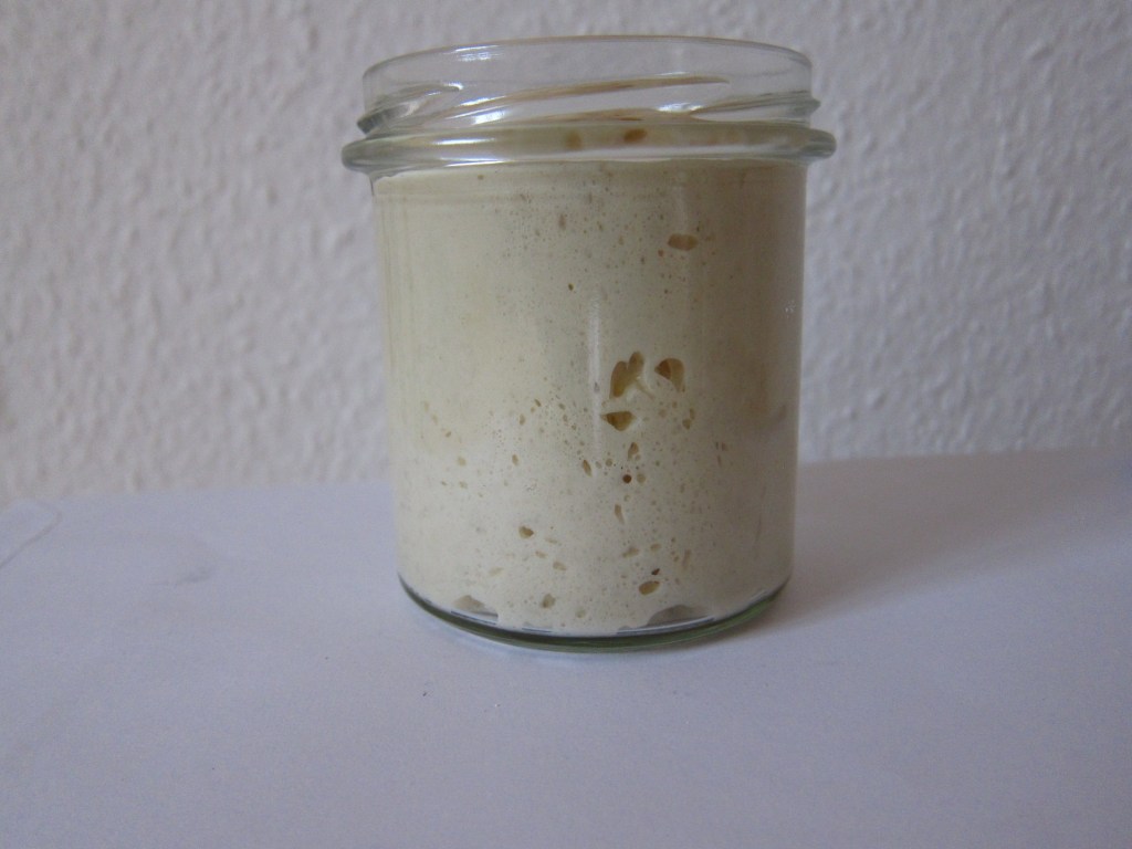 Falls das nicht der Fall sein sollte, läßt man ihn so lange stehen – eventuell dabei an einen wärmeren Ort stellen – bis er sich deutlich entwickelt hat und die Oberfläche von vielen Bläschen durchzogen ist.