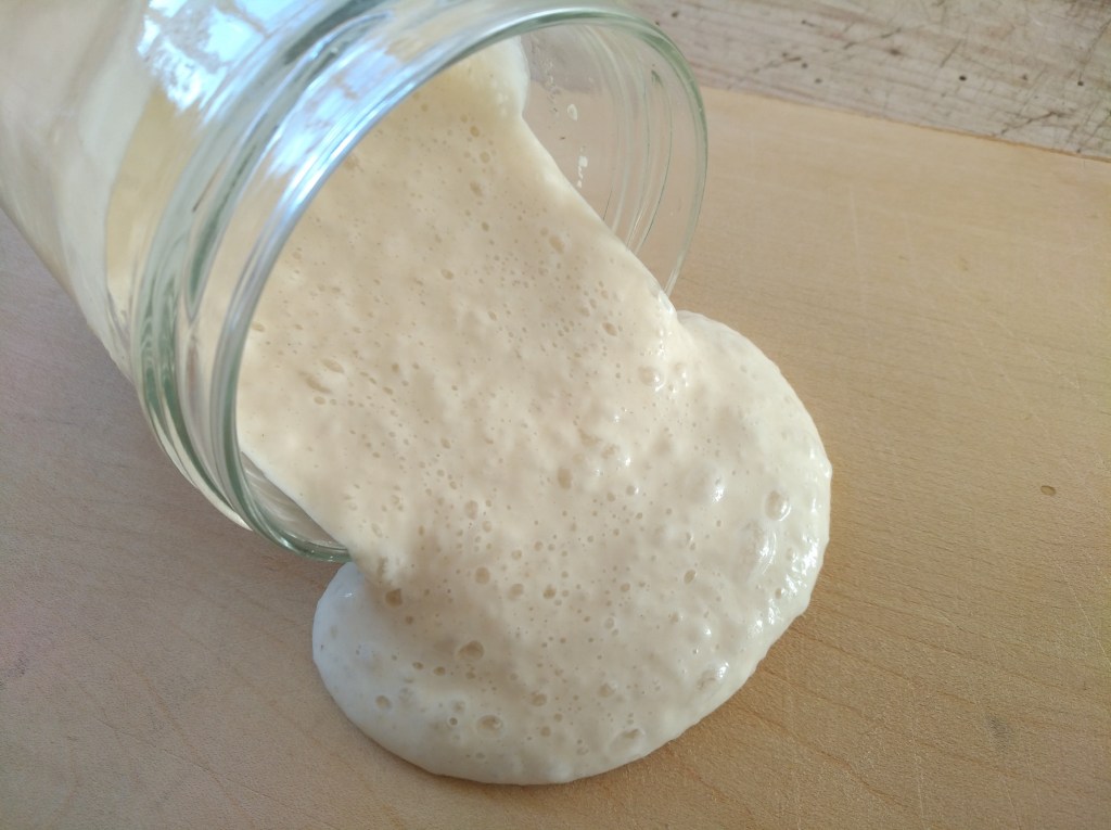 Das wiederholt man so oft, bis sich der Sauerteig innerhalb von drei Stunden zu verdoppeln beginnt. Anschließend wird der Sauerteig bis zur weiteren Verwendung im Kühlschrank gelagert oder direkt verbacken.
